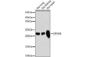 Mammalian lens crystallins are divided into alpha, beta, and gamma families. Alpha crystallins are composed of two gene products: alpha-A and alpha-B, for acidic and basic, respectively. Alpha crystallins can be induced by heat shock and are members of the small heat shock protein (HSP20) family. They act as molecular chaperones although they do not renature proteins and release them in the fashion of a true chaperone, instead they hold them in large soluble aggregates. Post-translational modifications decrease the ability to chaperone. These heterogeneous aggregates consist of 30-40 subunits, the alpha-A and alpha-B subunits have a 3:1 ratio, respectively. Two additional functions of alpha crystallins are an autokinase activity and participation in the intracellular architecture. The encoded protein has been identified as a moonlighting protein based on its ability to perform mechanistically distinct functions. Alpha-A and alpha-B gene products are differentially expressed, alpha-A is preferentially restricted to the lens and alpha-B is expressed widely in many tissues and organs. Elevated expression of alpha-B crystallin occurs in many neurological diseases, a missense mutation cosegregated in a family with a desmin-related myopathy. Alternative splicing results in multiple transcript variants. [provided by RefSeq, Jan 2014],CMD1II, CRYA2, CTPP2, CTRCT16, HEL-S-101, HSPB5, MFM2,Apoptosis,Cancer,Cell Biology & Developmental Biology,Endocrine & Metabolism,Kinase,Kinase_Tyrosine kinases,Neurodegenerative Diseases Markers,Neuroscience,Other Neurological disorders,Signal Transduction,CRYAB
