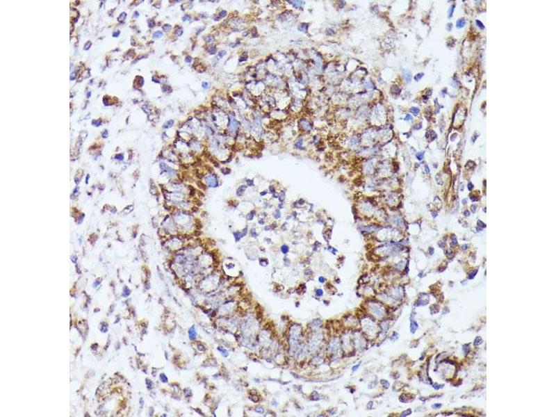 This gene encodes component E2 of the multi-enzyme pyruvate dehydrogenase complex (PDC). PDC resides in the inner mitochondrial membrane and catalyzes the conversion of pyruvate to acetyl coenzyme A. The protein product of this gene, dihydrolipoamide acetyltransferase, accepts acetyl groups formed by the oxidative decarboxylation of pyruvate and transfers them to coenzyme A. Dihydrolipoamide acetyltransferase is the antigen for antimitochondrial antibodies. These autoantibodies are present in nearly 95 % of patients with the autoimmune liver disease primary biliary cirrhosis (PBC). In PBC, activated T lymphocytes attack and destroy epithelial cells in the bile duct where this protein is abnormally distributed and overexpressed. PBC enventually leads to cirrhosis and liver failure. Mutations in this gene are also a cause of pyruvate dehydrogenase E2 deficiency which causes primary lactic acidosis in infancy and early childhood.,DLAT,DLTA,PDC-E2,PDCE2,Cancer,Signal Transduction,Endocrine & Metabolism,Mitochondrial metabolism,Mitochondrial markers,Carbohydrate metabolism,DLAT
