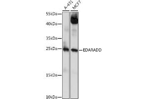 This gene was identified by its association with ectodermal dysplasia, a genetic disorder characterized by defective development of hair, teeth, and eccrine sweat glands. The protein encoded by this gene is a death domain-containing protein, and is found to interact with EDAR, a death domain receptor known to be required for the development of hair, teeth and other ectodermal derivatives. This protein and EDAR are coexpressed in epithelial cells during the formation of hair follicles and teeth. Through its interaction with EDAR, this protein acts as an adaptor, and links the receptor to downstream signaling pathways. Two alternatively spliced transcript variants of this gene encoding distinct isoforms have been reported.,EDARADD,ECTD11A,ECTD11B,ED3,EDA3,Epigenetics & Nuclear Signaling,Signal Transduction,Cell Biology & Developmental Biology,EDARADD