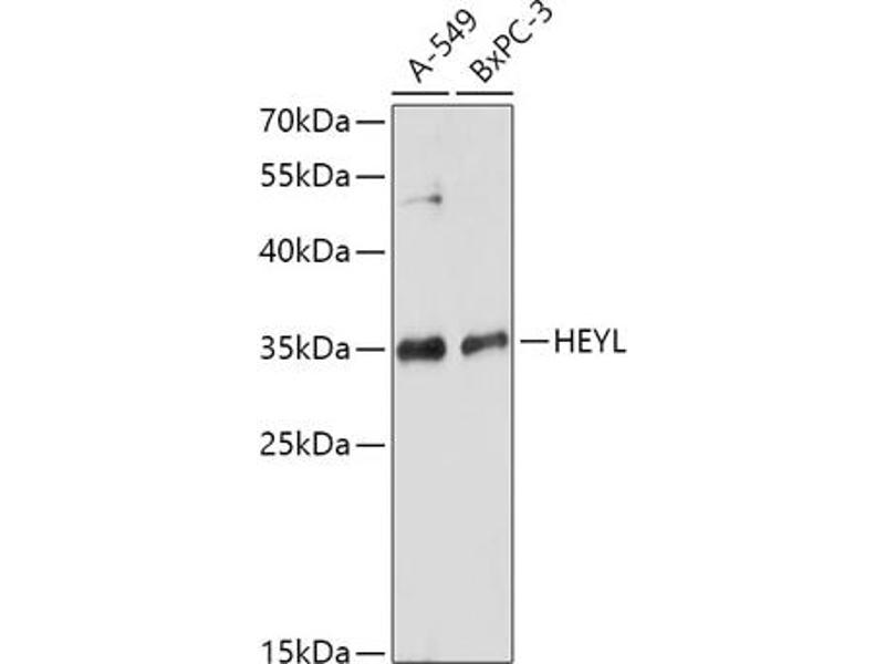 This gene encodes a member of the hairy and enhancer of split-related (HESR) family of basic helix-loop-helix (bHLH)-type transcription factors. The sequence of the encoded protein contains a conserved bHLH and orange domain, but its YRPW motif has diverged from other HESR family members. It is thought to be an effector of Notch signaling and a regulator of cell fate decisions. Alternatively spliced transcript variants have been found, but their biological validity has not been determined.,HEY3,HRT3,HESR3,bHLHb33,HEYL,Epigenetics & Nuclear Signaling,Transcription Factors,HEYL