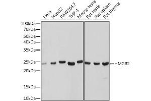 This gene encodes a member of the non-histone chromosomal high mobility group protein family. The proteins of this family are chromatin-associated and ubiquitously distributed in the nucleus of higher eukaryotic cells. In vitro studies have demonstrated that this protein is able to efficiently bend DNA and form DNA circles. These studies suggest a role in facilitating cooperative interactions between cis-acting proteins by promoting DNA flexibility. This protein was also reported to be involved in the final ligation step in DNA end-joining processes of DNA double-strand breaks repair and V(D)J recombination. [provided by RefSeq, Jul 2008],HMG2,Epigenetics & Nuclear Signaling,Histones,RNA Binding,HMGB2