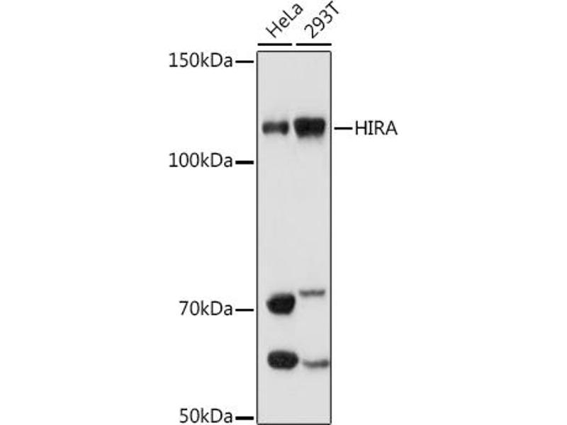 This gene encodes a histone chaperone that preferentially places the variant histone H3.3 in nucleosomes. Orthologs of this gene in yeast, flies, and plants are necessary for the formation of transcriptionally silent heterochomatin. This gene plays an important role in the formation of the senescence-associated heterochromatin foci. These foci likely mediate the irreversible cell cycle changes that occur in senescent cells. It is considered the primary candidate gene in some haploinsufficiency syndromes such as DiGeorge syndrome, and insufficient production of the gene may disrupt normal embryonic development. [provided by RefSeq, Jul 2008],DGCR1, TUP1, TUPLE1,Cell Biology & Developmental Biology,Chromatin Remodeling,Epigenetics & Nuclear Signaling,Germline Stem Cells,Stem Cells,HIRA