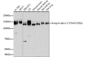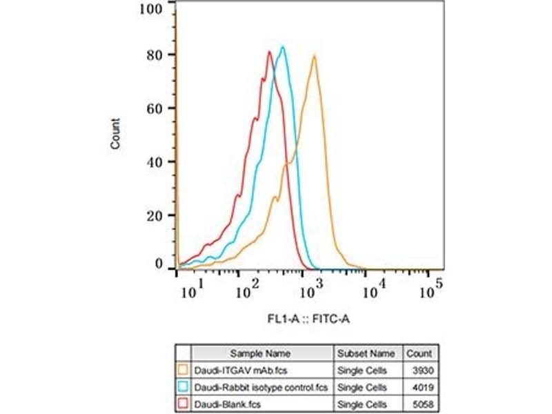 The product of this gene belongs to the integrin alpha chain family. Integrins are heterodimeric integral membrane proteins composed of an alpha subunit and a beta subunit that function in cell surface adhesion and signaling. The encoded preproprotein is proteolytically processed to generate light and heavy chains that comprise the alpha V subunit. This subunit associates with beta 1, beta 3, beta 5, beta 6 and beta 8 subunits. The heterodimer consisting of alpha V and beta 3 subunits is also known as the vitronectin receptor. This integrin may regulate angiogenesis and cancer progression. Alternative splicing results in multiple transcript variants. Note that the integrin alpha 5 and integrin alpha V subunits are encoded by distinct genes. [provided by RefSeq, Oct 2015],CD51,MSK8,VNRA,VTNR,Integrin alpha V,ITGAV,CDs,Cell Biology & Developmental Biology,G protein signaling,G protein signaling_G-Protein-Coupled Receptors Signaling to MAPK/Erk,Immunology & Inflammation,MAPK-Erk Signaling Pathway,PI3K-Akt Signaling Pathway,Signal Transduction,ITGAV