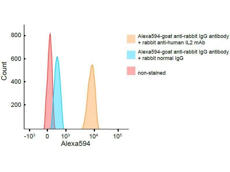 The protein encoded by this gene is a secreted cytokine that is important for the proliferation of T and B lymphocytes. The receptor of this cytokine is a heterotrimeric protein complex whose gamma chain is also shared by interleukin 4 (IL4) and interleukin 7 (IL7). The expression of this gene in mature thymocytes is monoallelic, which represents an unusual regulatory mode for controlling the precise expression of a single gene. The targeted disruption of a similar gene in mice leads to ulcerative colitis-like disease, which suggests an essential role of this gene in the immune response to antigenic stimuli.,IL2,IL-2,TCGF,lymphokine,Cell Biology & Developmental Biology,Apoptosis,Growth factor,Immunology & Inflammation,Cytokines,Interleukins,Cell Intrinsic Innate Immunity Signaling Pathway,IL2