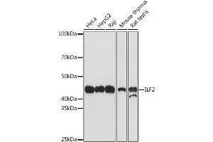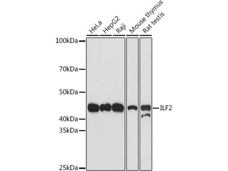 The protein encoded by this gene is a transcription factor required for T-cell expression of the interleukin 2 gene. It also binds RNA and is an essential component for encapsidation and protein priming of hepatitis B viral polymerase. The encoded 45 kDa protein (NF45, ILF2) forms a complex with the 90 kDa interleukin enhancer-binding factor 3 (NF90, ILF3), and this complex has been shown to affect the redistribution of nuclear mRNA to the cytoplasm, to repair DNA breaks by nonhomologous end joining, and to negatively regulate the microRNA processing pathway. Knockdown of NF45 or NF90 protein retards cell growth, possibly by inhibition of mRNA stabilization. Alternative splicing results in multiple transcript variants. Related pseudogenes have been found on chromosomes 3 and 14. [provided by RefSeq, Dec 2014],NF45, PRO3063,Epigenetics & Nuclear Signaling,RNA Binding,Transcription Factors,ILF2