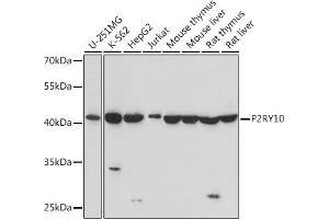This anti-P2RY10 antibody is a 兔 多克隆 antibody detecting P2RY10 in WB. Suitable for 人.