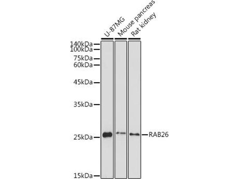 This anti-RAB26 antibody is a 兔 多克隆 antibody detecting RAB26 in WB. Suitable for 人.