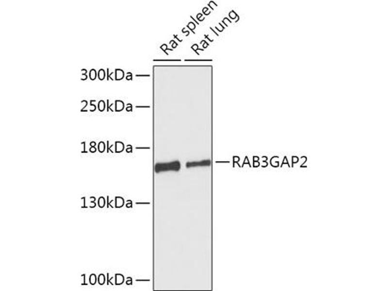 The protein encoded by this gene belongs to the RAB3 protein family, members of which are involved in regulated exocytosis of neurotransmitters and hormones. This protein forms the Rab3 GTPase-activating complex with RAB3GAP1, where it constitutes the regulatory subunit, whereas the latter functions as the catalytic subunit. This gene has the highest level of expression in the brain, consistent with it having a key role in neurodevelopment. Mutations in this gene are associated with Martsolf syndrome.[provided by RefSeq, Oct 2009],RAB3-GAP150,RAB3GAP150,SPG69,WARBM2,p150,RAB3GAP2,Signal Transduction,G protein signaling,Signal Transduction,Cell Biology & Developmental Biology,Neuroscience,RAB3GAP2
