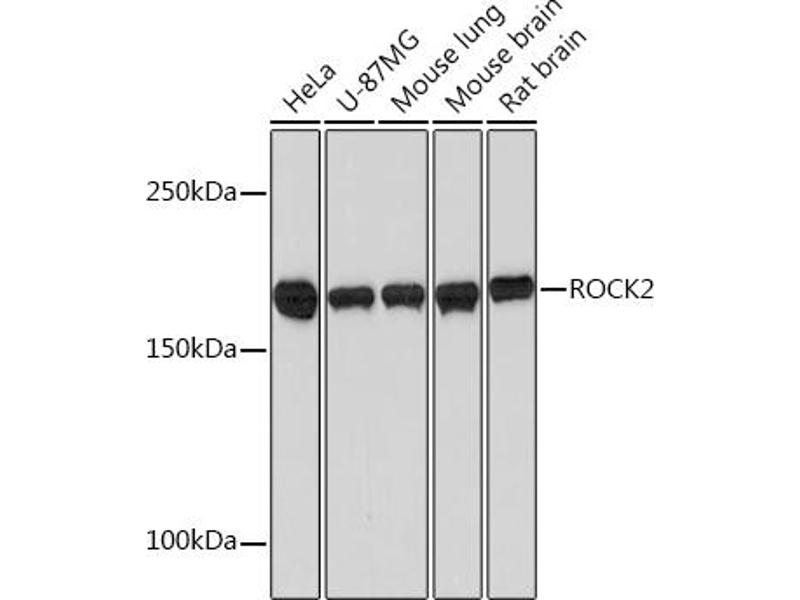 The protein encoded by this gene is a serine/threonine kinase that regulates cytokinesis, smooth muscle contraction, the formation of actin stress fibers and focal adhesions, and the activation of the c-fos serum response element. This protein, which is an isozyme of ROCK1 is a target for the small GTPase Rho. [provided by RefSeq, Jul 2008],ROCK-II,Apoptosis,Cancer,Cell Adhesion,Cell Biology & Developmental Biology,Cell Cycle,Cell Cycle_Centrosome,Cytoskeleton,Cytoskeleton_Actins,Cytoskeleton_Microtubules,G protein signaling,Kinase,Kinase_Serine/threonine kinases,Signal Transduction,TGF-b-Smad Signaling Pathway,ROCK2