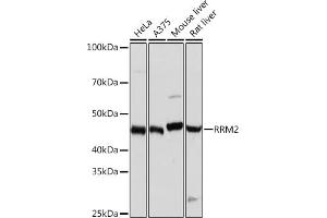 This gene encodes one of two non-identical subunits for ribonucleotide reductase. This reductase catalyzes the formation of deoxyribonucleotides from ribonucleotides. Synthesis of the encoded protein (M2) is regulated in a cell-cycle dependent fashion. Transcription from this gene can initiate from alternative promoters, which results in two isoforms that differ in the lengths of their N-termini. Related pseudogenes have been identified on chromosomes 1 and X. [provided by RefSeq, Sep 2009],R2, RR2, RR2M,Epigenetics & Nuclear Signaling,RRM2