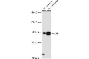 This gene encodes a ubiquitous nuclear protein that stimulates both cell proliferation and differentiation. It is a member of the MADS (MCM1, Agamous, Deficiens, and SRF) box superfamily of transcription factors. This protein binds to the serum response element (SRE) in the promoter region of target genes. This protein regulates the activity of many immediate-early genes, for example c-fos, and thereby participates in cell cycle regulation, apoptosis, cell growth, and cell differentiation. This gene is the downstream target of many pathways, for example, the mitogen-activated protein kinase pathway (MAPK) that acts through the ternary complex factors (TCFs). Two transcript variants encoding different isoforms have been found for this gene.,SRF,MCM1,Epigenetics & Nuclear Signaling,Transcription Factors,Signal Transduction,MAPK-Erk Signaling Pathway,Cell Biology & Developmental Biology,Stem Cells,Cardiovascular,Heart,Cardiogenesis,SRF