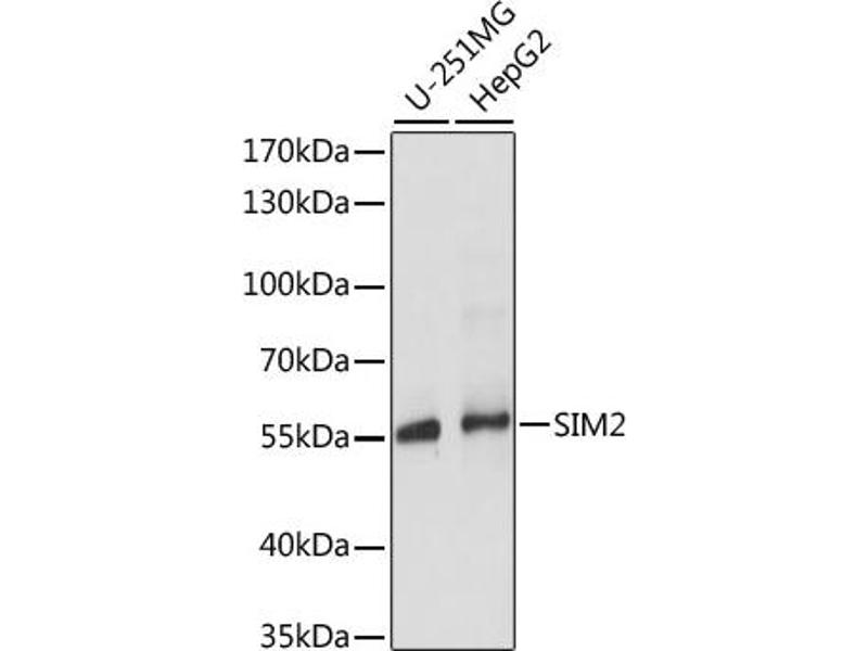 This gene represents a homolog of the Drosophila single-minded (sim) gene, which encodes a transcription factor that is a master regulator of neurogenesis. The encoded protein is ubiquitinated by RING-IBR-RING-type E3 ubiquitin ligases, including the parkin RBR E3 ubiquitin protein ligase. This gene maps within the so-called Down syndrome chromosomal region, and is thus thought to contribute to some specific Down syndrome phenotypes. Alternative splicing of this gene results in multiple transcript variants.,SIM2,HMC13F06,HMC29C01,SIM,bHLHe15,Epigenetics & Nuclear Signaling,Transcription Factors,Cancer,Tumor biomarkers,Neuroscience,SIM2