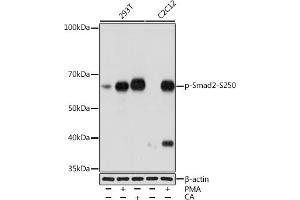 The protein encoded by this gene belongs to the SMAD, a family of proteins similar to the gene products of the Drosophila gene 'mothers against decapentaplegic' (Mad) and the C. elegans gene Sma. SMAD proteins are signal transducers and transcriptional modulators that mediate multiple signaling pathways. This protein mediates the signal of the transforming growth factor (TGF)-beta, and thus regulates multiple cellular processes, such as cell proliferation, apoptosis, and differentiation. This protein is recruited to the TGF-beta receptors through its interaction with the SMAD anchor for receptor activation (SARA) protein. In response to TGF-beta signal, this protein is phosphorylated by the TGF-beta receptors. The phosphorylation induces the dissociation of this protein with SARA and the association with the family member SMAD4. The association with SMAD4 is important for the translocation of this protein into the nucleus, where it binds to target promoters and forms a transcription repressor complex with other cofactors. This protein can also be phosphorylated by activin type 1 receptor kinase, and mediates the signal from the activin. Alternatively spliced transcript variants have been observed for this gene. [provided by RefSeq, May 2012],JV18, JV18-1, MADH2, MADR2, hMAD-2, hSMAD2,Angiogenesis,Cancer,Cardiovascular,Cell Biology & Developmental Biology,Epigenetics & Nuclear Signaling,ESC Pluripotency and Differentiation,Growth factors,Protein phosphorylation,Signal Transduction,Stem Cells,TGF-b-Smad Signaling Pathway,TGF-b-Smad Signaling Pathway_SMADs,Transcription Factors,SMAD2