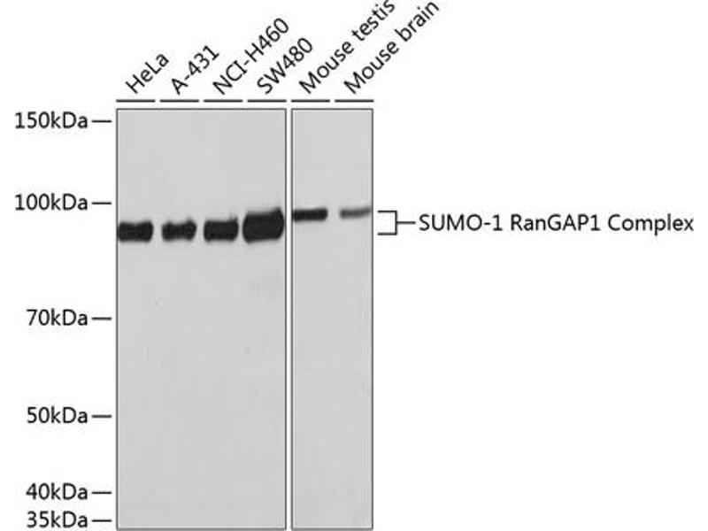 This gene encodes a protein that is a member of the SUMO (small ubiquitin-like modifier) protein family. It functions in a manner similar to ubiquitin in that it is bound to target proteins as part of a post-translational modification system. However, unlike ubiquitin which targets proteins for degradation, this protein is involved in a variety of cellular processes, such as nuclear transport, transcriptional regulation, apoptosis, and protein stability. It is not active until the last four amino acids of the carboxy-terminus have been cleaved off. Several pseudogenes have been reported for this gene. Alternate transcriptional splice variants encoding different isoforms have been characterized. [provided by RefSeq, Jul 2008],DAP1,GMP1,OFC10,PIC1,SENP2,SMT3,SMT3C,SMT3H3,UBL1,SUMO1,SUMO-1,Autophagy,Cardiovascular,Cell Biology & Developmental Biology,Endocrine & Metabolism,Epigenetics & Nuclear Signaling,Heart,IL-6 Receptor Signaling Pathway,Immunology & Inflammation,Mitochondrial metabolism,NF-kB Signaling Pathway,RNA Binding,Ubiquitin,SUMO1