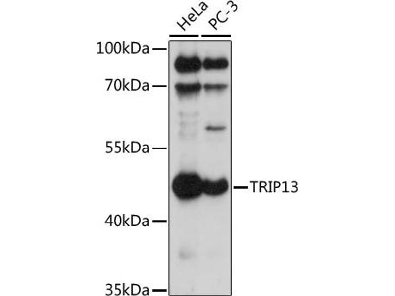 This anti-TRIP13 antibody is a 兔 多克隆 antibody detecting TRIP13 in WB. Suitable for 人.