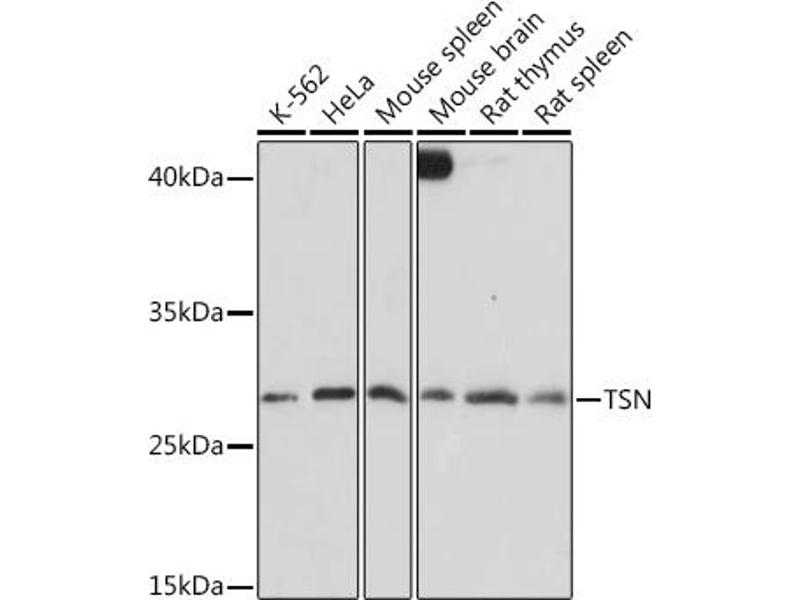 - A synthetic peptide corresponding to a sequence within amino acids 50-150 of human TSN (NP_004613.1).