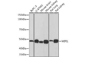 This anti-WIPI1 antibody is a 兔 单克隆 antibody detecting WIPI1 in WB. Suitable for 人.