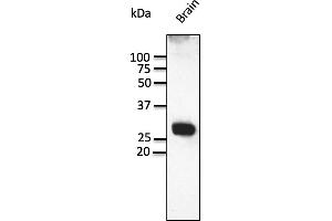 - Purified recombinant peptide derived from within residues 181 aa to the C-terminus of Rab3a produced in E. coli.