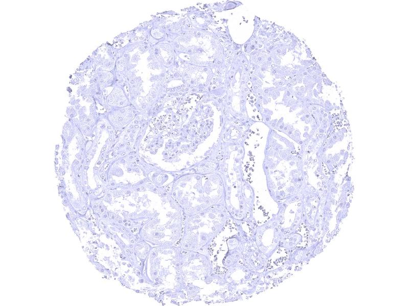 Negative Control: Kidney: CELA3B staining should be absent in all epithelial cells.