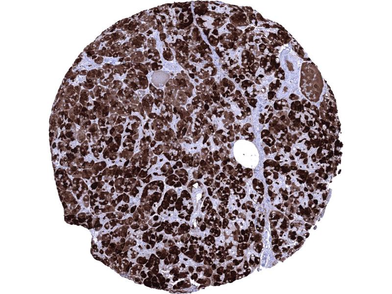 Positive Control: Pancreas: Acinar cells should show a strong CELA3B immunostaining with apical predominance.