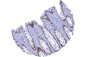 Positive Control: Colon: A strong nuclear staining should be seen in virtually all columnar epithelial cells.