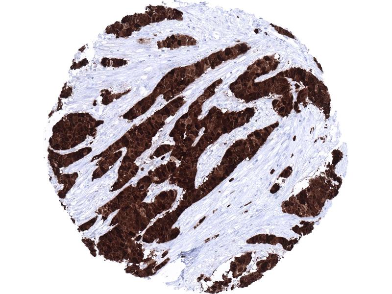 Positive Control: Urinary bladder: A strong S100P immunostaining should be seen in the urothelium but not in the stroma or muscular cells.