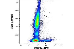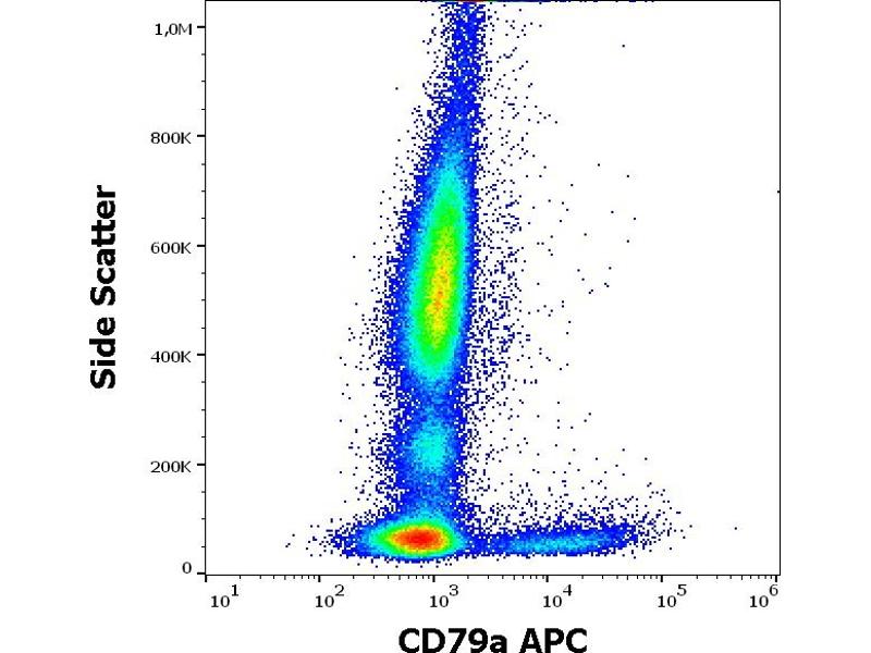The mouse monoclonal antibody ZL7.4 interacts with extracellular domain of CD79a (Ig alpha), a 40-45 kDa subunit of B cell antigen-specific receptor (BCR) and its early developmental forms.