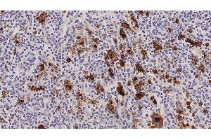 Immunohistochemistry on paraffin sections. Heat Induced Epitope Retrieval (HIER): Epitope Retrieval Solution pH 6. Suggested dilution: 1:100 for 30 minutes at 25 °C. This is provided as a guide and users should determine their own optimal working dilutions. Immunohistochemical (IHC) staining techniques allow for the visualization of antigens via the sequential application of a specific antibody to the antigen (primary antibody), a secondary antibody to the primary antibody and an enzyme complex with a chromogenic substrate with interposed washing steps. The enzymatic activation of the chromogen results in a visible reaction product at the antigen site. The specimen may then be counterstained and coverslipped. Results are interpreted using a light microscope.