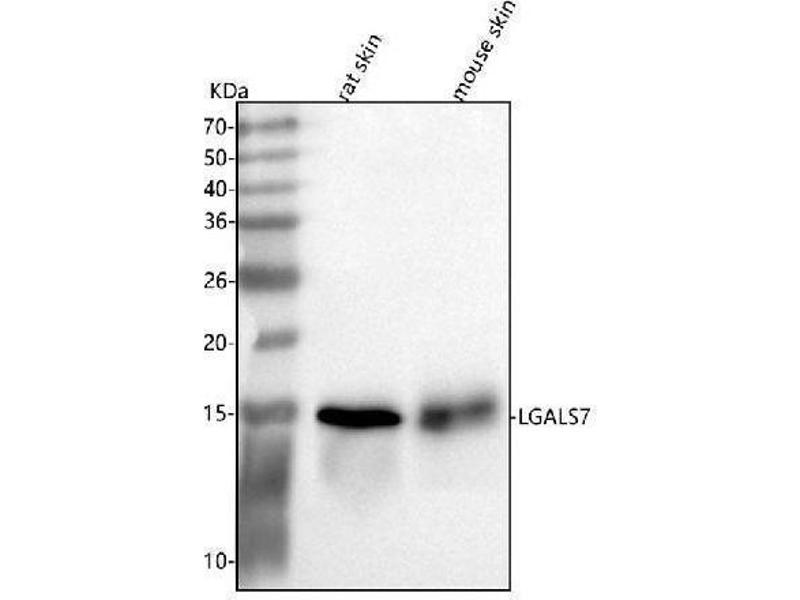 - Anti-Galectin-7/LGALS7 Antibody (ABIN7598985). Tested in WB, ELISA applications. This antibody reacts with Human, Mouse, Rat. This is a premium antibody that guarantees superior quality, high affinity, and strong signals with minimal background in Western blot applications.