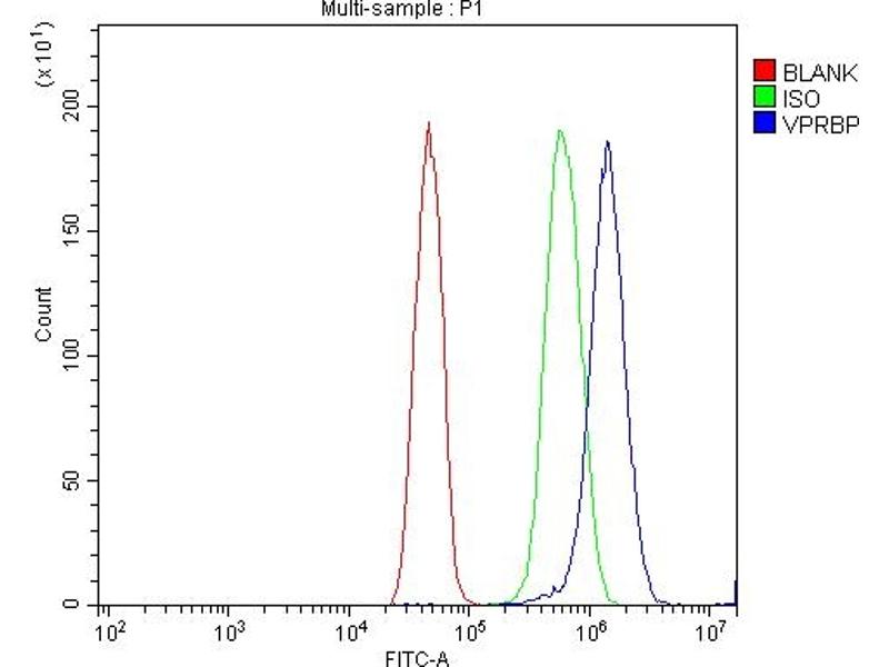 Background: VprBP was first identified as a protein that can interact with HIV-1 viral protein R. It is a component of the CUL4A-RBX1-DDB1-VprBP/DCAF1 E3 ubiquitin-protein ligase complex that could interact with HIV-1 virus Vpr protein and HIV-2 virus Vpx protein. VprBP is a 1,507-amino acid protein that contains conserved domains, including YXXY repeats, the Lis homology motif, and WD40 repeats. Through binding to Vpr, VprBP allows Vpr to modulate the catalytic activity of the CUL4-DDB1 complex, which in turn leads to the induction of G2 phase arrest in the virus-infected cells. Recently it has been reported that VprBP is able to regulate the p53-induced transcription and apoptotic pathway.