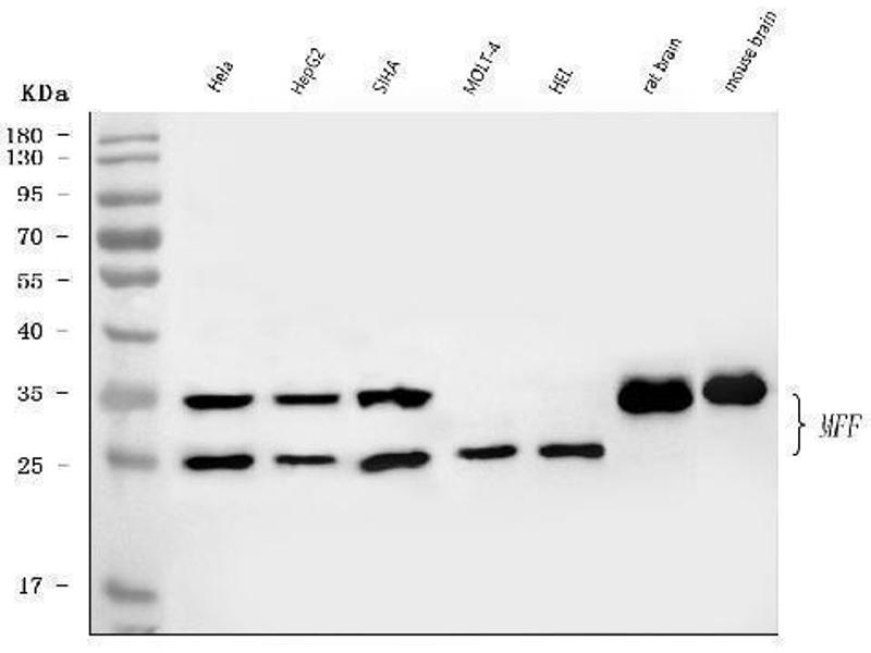 - Anti-MFF Antibody (ABIN7599292). Tested in ELISA, Flow Cytometry, IF, IHC, ICC, WB applications. This antibody reacts with Human, Mouse, Rat. This is a premium antibody that guarantees superior quality, high affinity, and strong signals with minimal background in Western blot applications.
