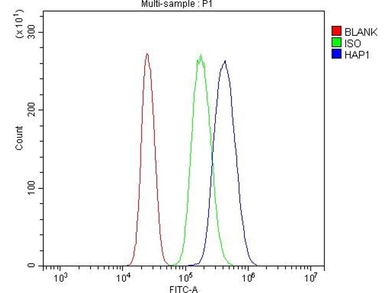 - Anti-HAP1 Antibody (ABIN7599522). Tested in ELISA, Flow Cytometry, IF, ICC, WB applications. This antibody reacts with Human, Mouse, Rat. This is a premium antibody that guarantees superior quality, high affinity, and strong signals with minimal background in Western blot applications.