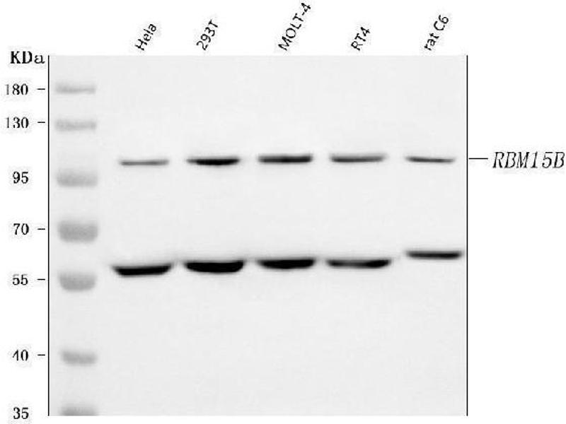 - Anti-RBM15B Antibody (ABIN7600219). Tested in ELISA, Flow Cytometry, IF, IHC, WB applications. This antibody reacts with Human, Rat. This is a premium antibody that guarantees superior quality, high affinity, and strong signals with minimal background in Western blot applications.