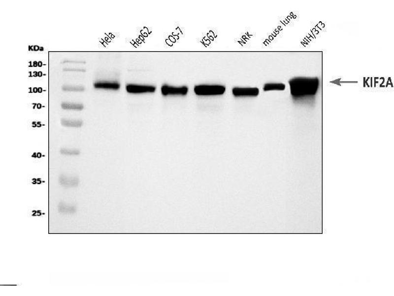 Background: Kinesin-like protein KIF2A is a protein that in humans is encoded by the KIF2A gene. The protein encoded by this gene is a plus end-ed motor required for normal mitotic progression. The encoded protein is required for normal spindle activity during mitosis and is necessary for normal brain development. Several transcript variants encoding different isoforms have been found for this gene.