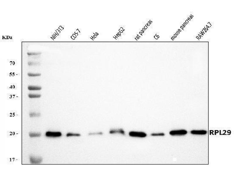 - Anti-RPL29 Antibody (ABIN7600993). Tested in ELISA, Flow Cytometry, IF, IHC, ICC, WB applications. This antibody reacts with Human, Mouse, Rat, Monkey. This is a premium antibody that guarantees superior quality, high affinity, and strong signals with minimal background in Western blot applications.