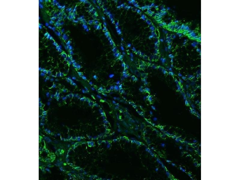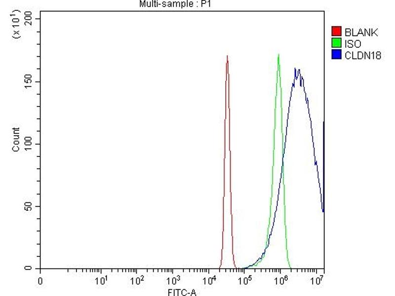 Background: Claudin-18 is a protein that in humans is encoded by the CLDN18 gene. This gene encodes a member of the claudin family. Claudins are integral membrane proteins and components of tight junction strands. Tight junction strands serve as a physical barrier to prevent solutes and water from passing freely through the paracellular space between epithelial or endothelial cell sheets, and also play critical roles in maintaining cell polarity and signal transductions. This gene is upregulated in patients with ulcerative colitis and highly overexpressed in infiltrating ductal adenocarcinomas. PKC/MAPK/AP-1 (protein kinase C/mitogen-activated protein kinase/activator protein-1) dependent pathway regulates the expression of this gene in gastric cells. Alternatively spliced transcript variants encoding different isoforms have been identified.