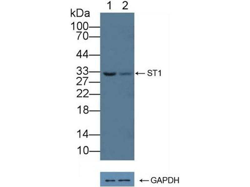 - The antibody is a rabbit polyclonal antibody raised against ST1. It has been selected for its ability to recognize ST1 in immunohistochemical staining and western blotting.