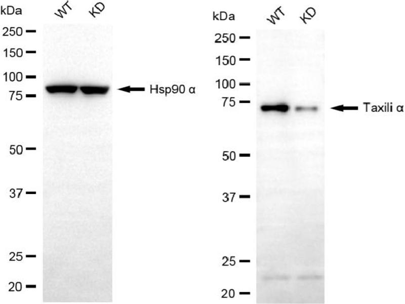 We assess the antibodies’ specificity and selectivity using knockdown techniques. Our validation approach is straightforward: if an antibody identifies a signal in wild-type (WT) cells, but this signal is absent or noticeably reduced in gene-silenced (KD) cells, we consider the antibody to be highly specific.