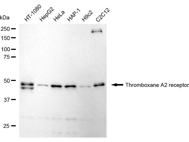 This anti-TBXA2R antibody is a 兔 单克隆 antibody detecting TBXA2R in WB. Suitable for 人.