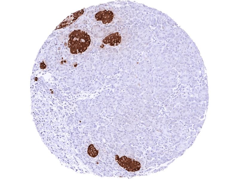 Positive Control: Pancreas: A strong Insulin staining should be seen in a large fraction of islet cells.