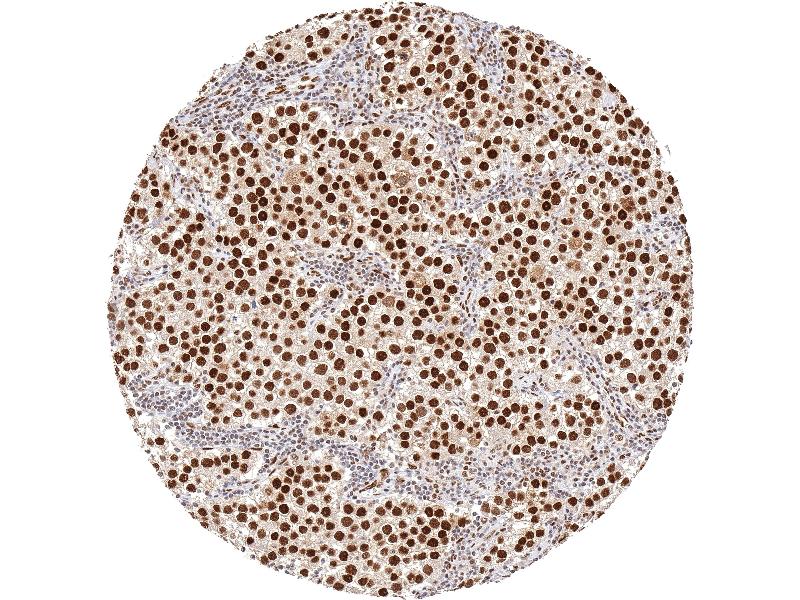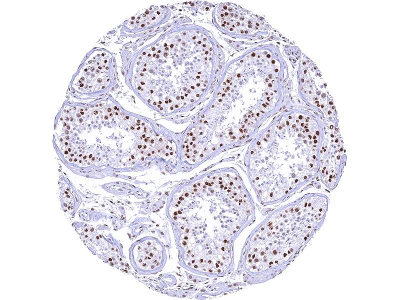 Positive Control: Testis: 53BP1 staining should be strong in spermatogonia but decrease with maturation of germ cells.