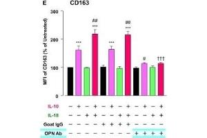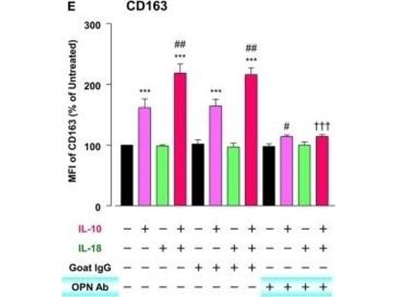 Background: Acute phase-regulated receptor involved in clearance and endocytosis of hemoglobin/haptoglobin complexes by macrophages and may thereby protect tissues from free hemoglobin-mediated oxidative damage. May play a role in the uptake and recycling of iron, via endocytosis of hemoglobin/haptoglobin and subsequent breakdown of heme. Binds hemoglobin/haptoglobin complexes in a calcium-dependent and pH -dependent manner. Exhibits a higher affinity for complexes of hemoglobin and multimeric haptoglobin of HP*1F phenotype than for complexes of hemoglobin and dimeric haptoglobin of HP*1S phenotype. Induces a cascade of intracellular signals that involves tyrosine kinase-dependent calcium mobilization, inositol triphosphate production and secretion of IL6 and CSF1. Isoform 3 exhibits the higher capacity for ligand endocytosis and the more pronounced surface expression when expressed in cells. After shedding, the soluble form (sCD163) may play an anti-inflammatory role, and may be a valuable diagnostic parameter for monitoring macrophage activation in inflammatory conditions.