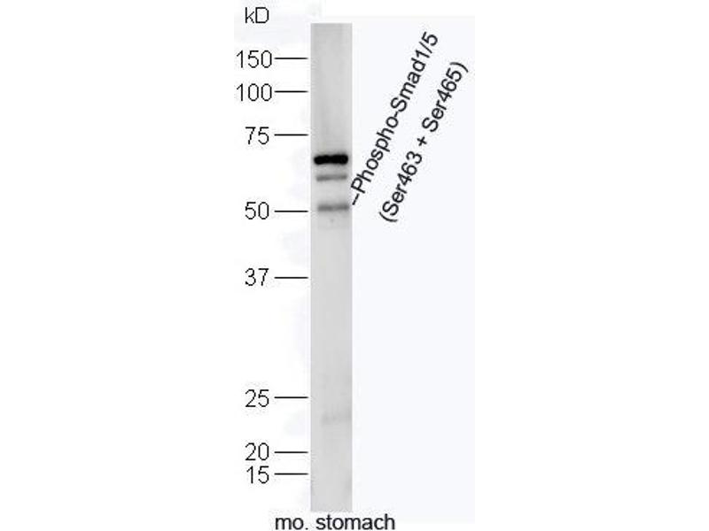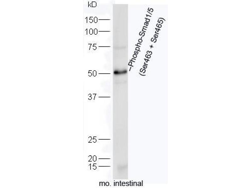 Synonyms: Smad1 phospho S463/465, Smad1 phospho Ser463/465, p-Smad1 Ser463/465, Mothers against decapentaplegic homolog 1, BSP 1, BSP1, BSP-1, Dwarfin A, DwfA, hSMAD 1, hSMAD1, JV 41, JV4 1, JV4-1, JV41, MAD mothers against decapentaplegic homolog 1, Mad related protein 1, MADH 1, MADH1, Madr 1, MADR1, Mothers against decapentaplegic homolog 1, Mothers against DPP homolog 1, Sma and Mad related protein 1, SMAD 1, SMAD-1, SMAD family member 1, SMAD mothers against DPP homolog 1 Drosophila, Spinal muscular atrophy distal with upper limb predominance, TGF beta signaling protein 1, Transforming growth factor beta signaling protein 1, SMAD1_HUMAN, MAD homolog 1, Mothers against DPP homolog 1, Mad-related protein 1, SMAD family member 1, Smad1, Transforming growth factor-beta-signaling protein 1.