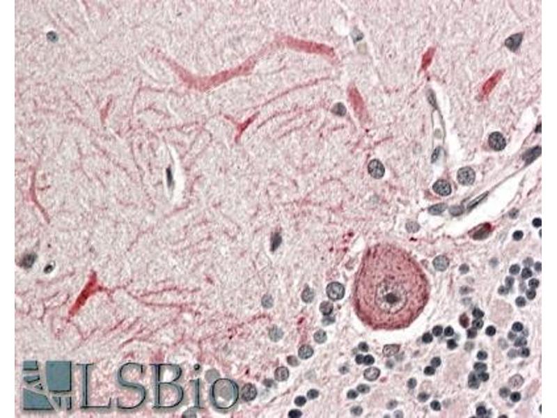 Immunohistochemistry: In paraffin embedded Human Cerebellum shows textured cytoplasm staining in Purkinje cell and processes. Recommended concentration: 3-5 μg/mL.