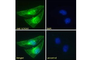 Immunofluorescence: Strong expression of the protein seen in the nuclei and membranes of HeLa cells, and in the membranes of NIH3T3 cells. Recommended concentration: 10μg/ml.