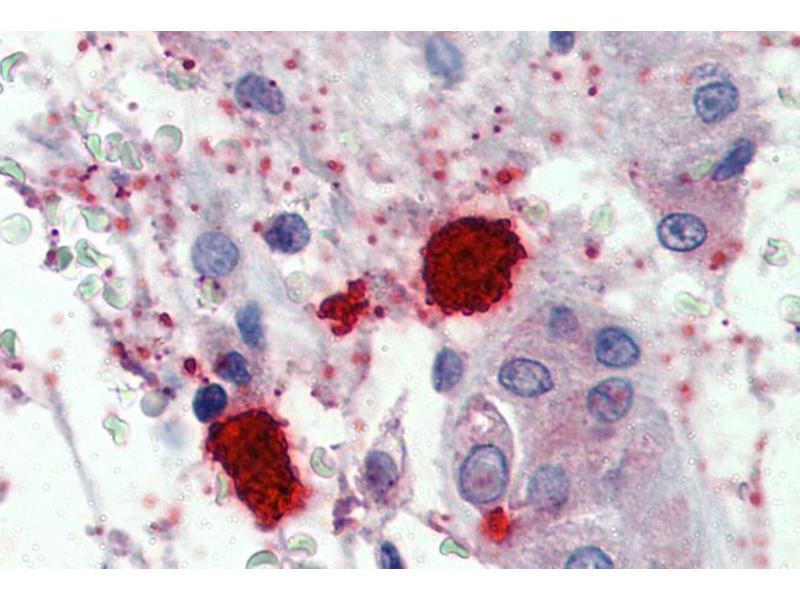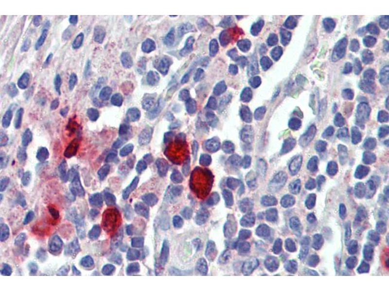Immunohistochemistry: Paraffin embedded Human Testis and Tonsil (Mast cells). Recommended concentration: 1.5 μg/mL.