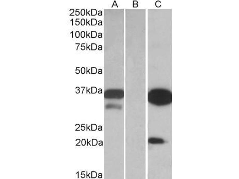 Western Blot: In transfected HEK293 transiently expressing full-length Human DAPP1 (myc and DYKDDDDK tagged), a band of approx. 35 kDa was observed. No bands were observed in mock-transfected HEK293 and the same band was observed using anti-DYKDDDDK tag a