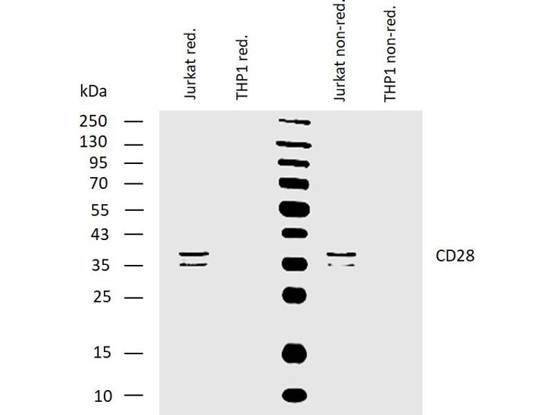 - The mouse monoclonal antibody CD28.2 recognizes an extracellular epitope of CD28, a disulfide-linked homodimeric type I glycoprotein (monomer of Mw 44 kDa) which is a critical costimulatory receptor of T cells.