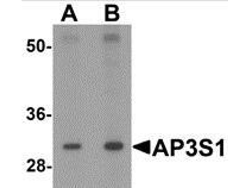 At least three isoforms of AP3S1 are known to exist, this antibody will detect the two larger isoforms. AP3S1 antibody is predicted to not cross-react with other AP3 protein family members.