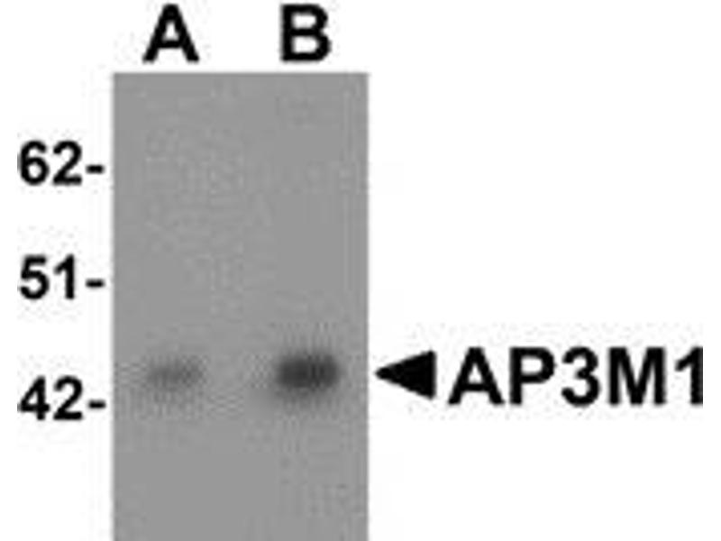 - Raised against a 15 amino acid peptide near the carboxy terminus of human AP3M1